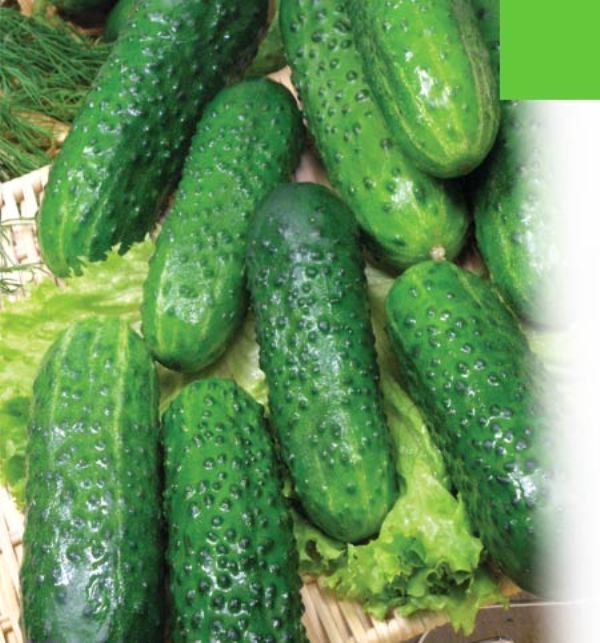 Раннеспелый (50 дней), партенокарпический гибрид для пленочных теплиц без обогрева и открытого грунта. Зеленец средней длины 10-12 см., диаметр 3,5-4см., цилиндрический, зелёный , крупнобугорчатый, опушение белое.Масса зеленца85 -120 гр. Мелкосемянный пресносладкий. Зеленцы генетически без горечи. Урожайность 12,5 – 13,0 кг/кв.м.