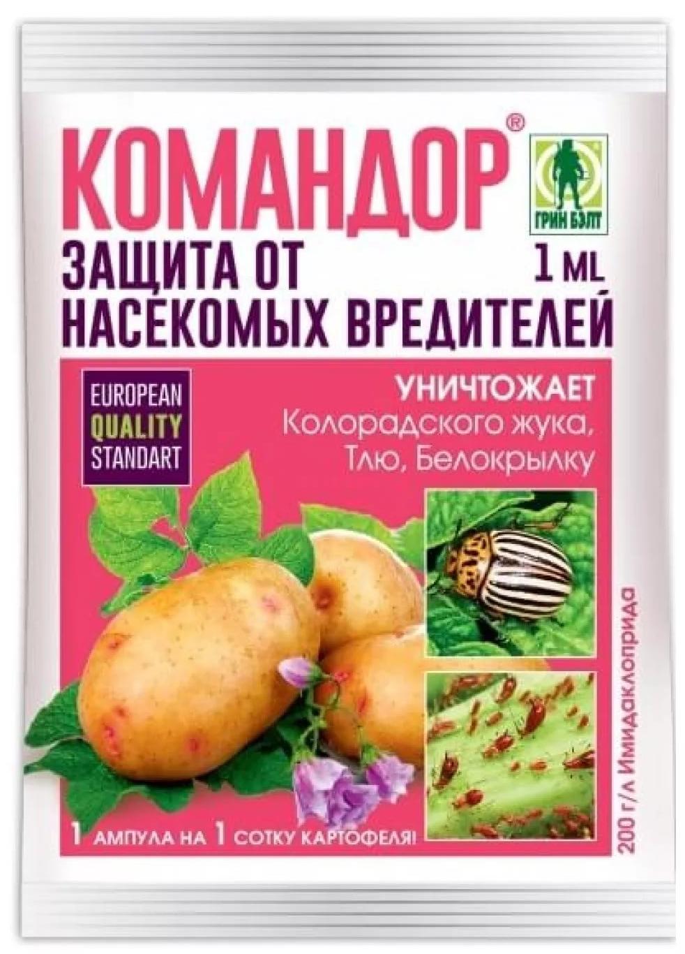 -«Командор» вызывает быструю гибель не только у колорадского жука, но и у других — белокрылок, проволочников, тли, цикадок, трипсов, минер и иных поверхностных огородных прожорливых вредителей.