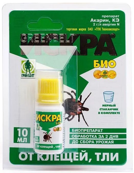 Искра Био создана на основе авермектинов — природных веществ, парализующих насекомых-вредителей. Препарат прошел государственные испытания, хорошо проверен на практике в открытом грунте и в теплицах. Действующее вещество "Искра Био": авертин N, 2 г/л, к.э., Производитель: ТПК ТЕХНОЭКСПОРТ Форма выпуска: флакон 10 мл, ампула 5 мл.