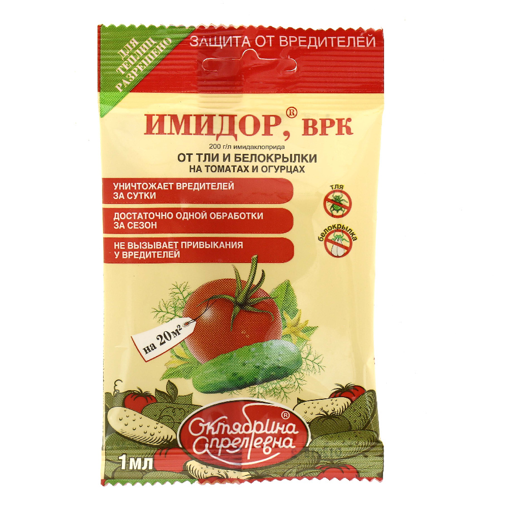 - обладает высокой скоростью воздействия на огурцах и томатах – эффект от обработки Имидор для защиты огурцов и томатовнаблюдается уже через несколько часов