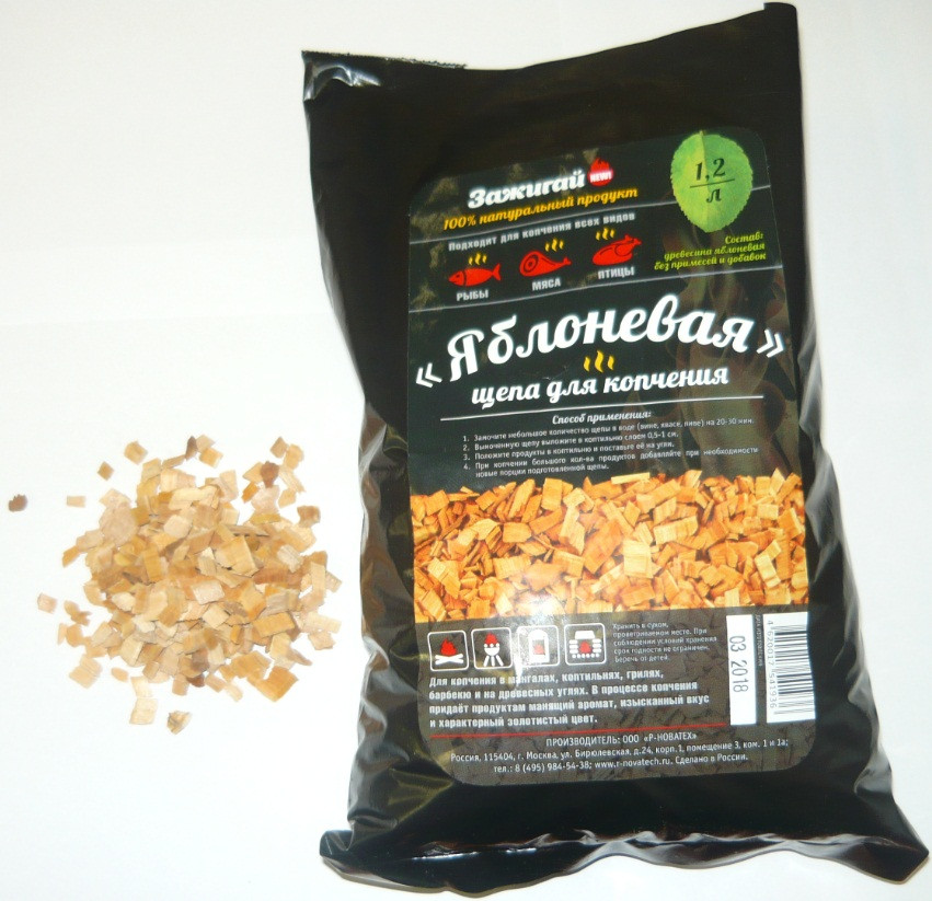 Щепа для копчения "Яблоневая» - качественное сырье для копчения мяса, птицы, морепродуктов. Древесина яблони имеет очень мягкий вкус, который идеально подходит для свинины, сала и некоторых морепродуктов. Если вы хотите получить тонкую золотую корочку, душистый запах сирени и ванили, легкий вкус фруктов, который гармонирует с естественным ароматом блюда, то вам нужна качественная щепа для копчения. Яблоня идеально подойдет для этих целей. Подходит для всех типов грилей. Щепа выполнена из качественной древесины