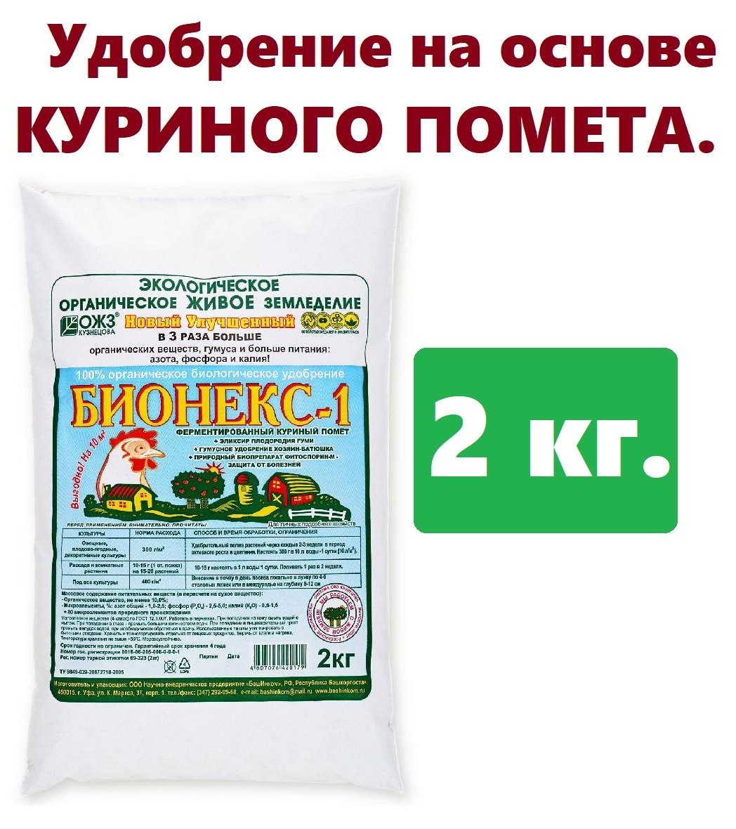 БИОНЕКС-1 куриный помёт 2 кг 8 штук/место...