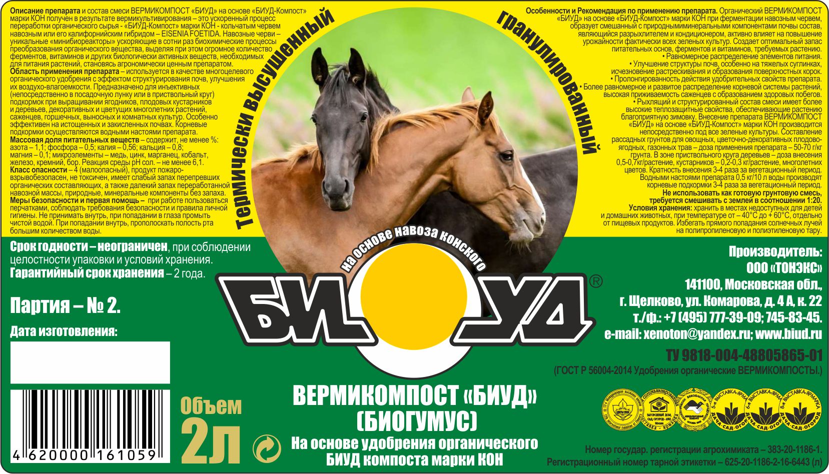 БИУД Конский ж/у "Овощное" - является термически обеззараженным. Обладает высокопитательным составом, предлагаемым растению в доступной форме.